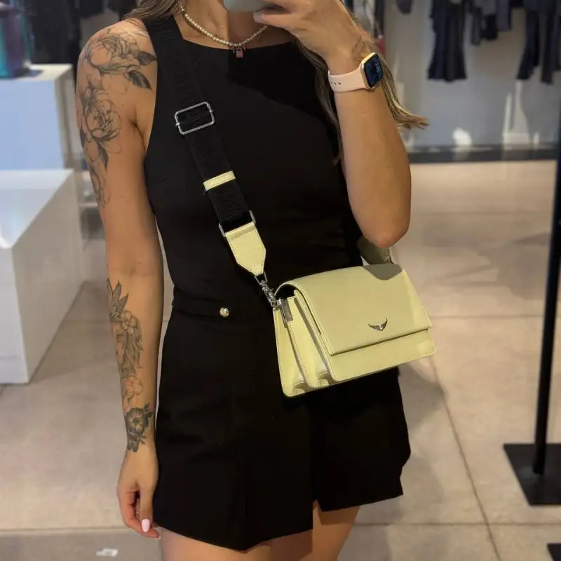 La Zadig & Voltaire Lolita Wings Leather Crossbody Bag en color blanco es una cartera versátil diseñada para acompañarte con estilo todos los días. Confeccionada en cuero liso de alta calidad, combina una estética moderna con funcionalidad, ofreciendo espacio suficiente para tus objetos esenciales sin perder su perfil elegante.