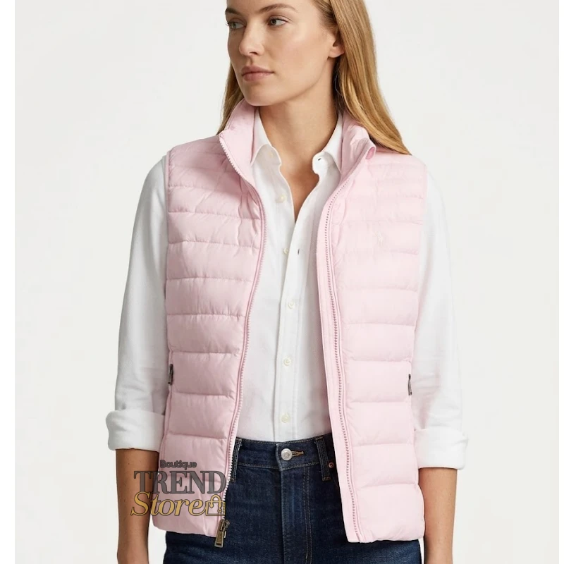 Esta chaqueta sin mangas es ese toque femenino y sofisticado que transforma cualquier look… el rosa claro, junto con el diseño acolchado, crea una prenda elegante pero moderna, perfecta para elevar outfits básicos sin esfuerzo. Es liviana, versátil y con ese aire exclusivo de Ralph Lauren que la hace destacar en cualquier ocasión, ideal para usar en capas y lograr un estilo pulido y actual.
