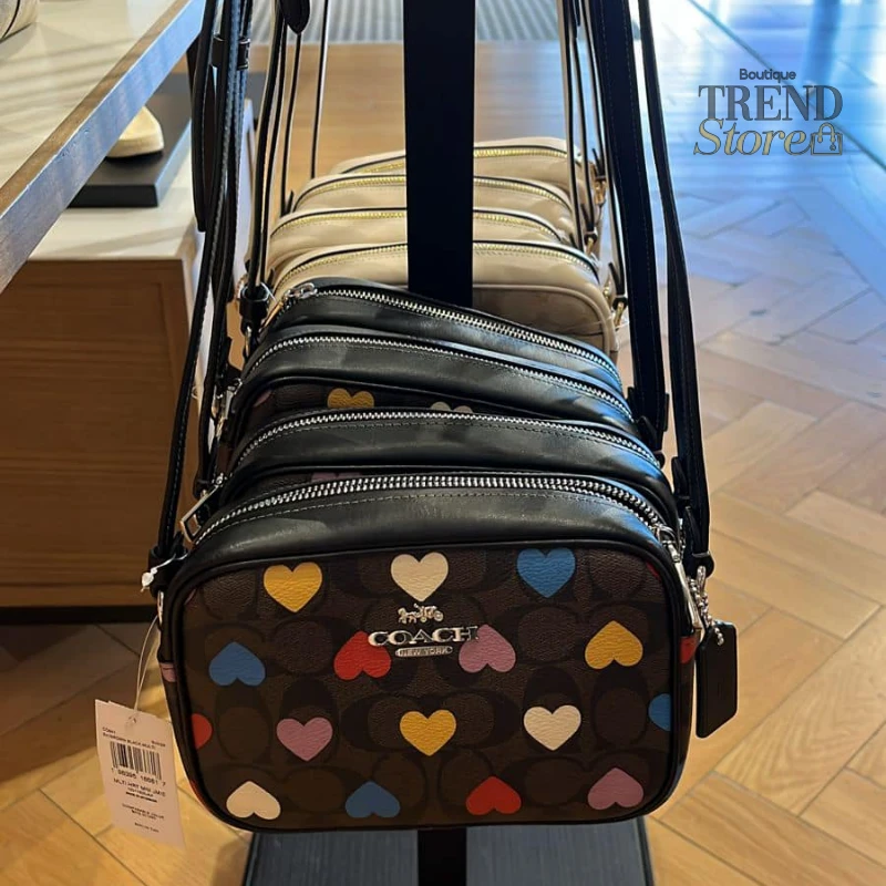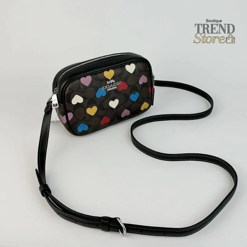 La Mini Jamie Camera Bag de Coach en Signature Canvas con estampado de corazones es una pieza moderna, funcional y llena de estilo. Disponible en Trendstore Chile, este modelo combina el diseño icónico de la marca con un toque femenino que la hace destacar.