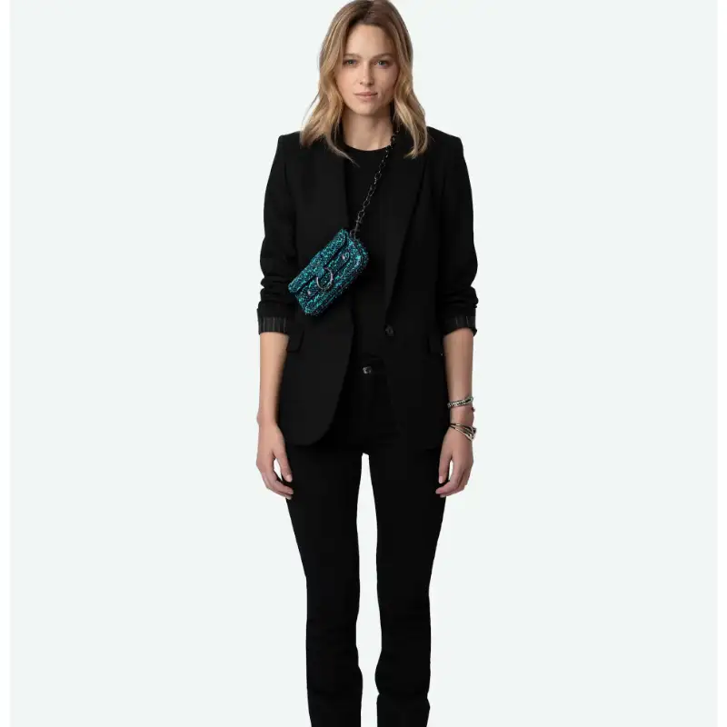 Su rabat con cierre magnético mantiene tus pertenencias seguras, mientras que la cadena metálica extraíble permite llevarla a la mano, al hombro o cruzada, adaptándose a cualquier ocasión, ya sea de día o de noche. Los detalles de alas, el anillo metálico grabado “Kate Loves Zadig&Voltaire” y el liseré clouté aportan un acabado sofisticado y distintivo, fiel al estilo audaz de la marca parisina.