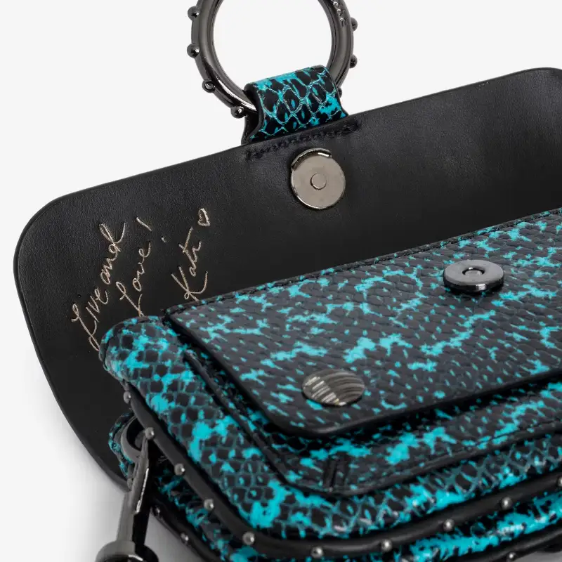 La Kate Wallet Wild es audaz, chic y súper versátil. Su cuero efecto python azul le da un toque único, y con su cadena metálica extraíble la puedes llevar a la mano, al hombro o crossbody. Compacta pero práctica, guarda tus esenciales con estilo.