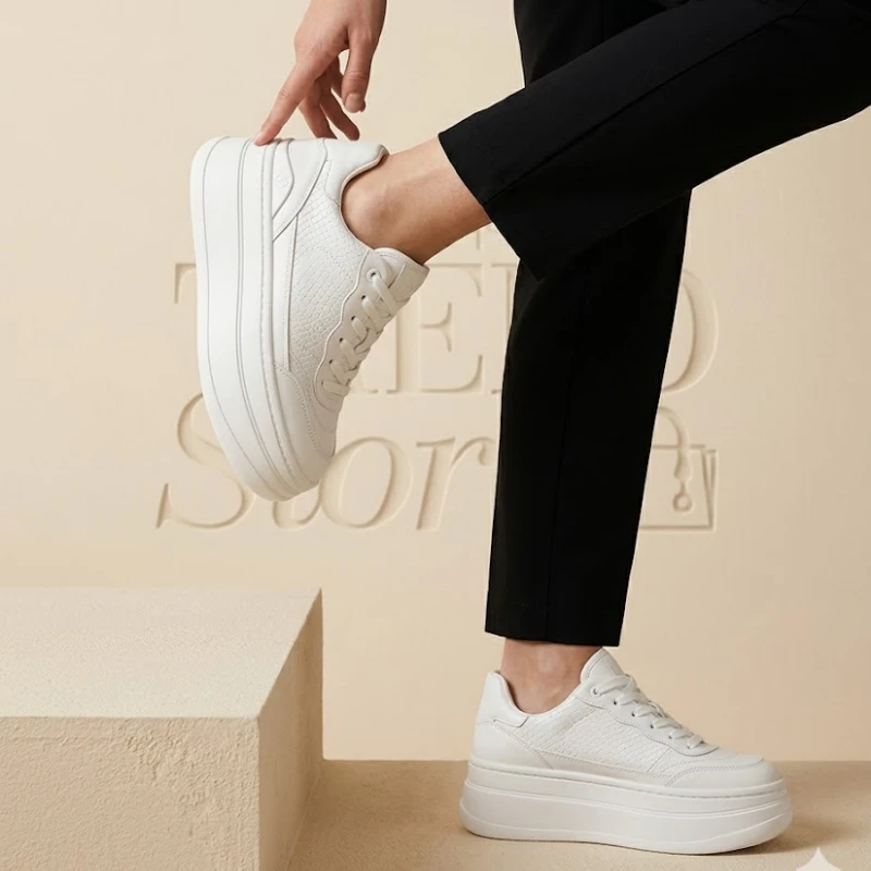 Su plataforma elevada estiliza visualmente la figura y entrega altura adicional sin comprometer comodidad. La suela de goma asegura estabilidad y tracción, mientras que el interior forrado en poliéster brinda confort durante todo el uso.